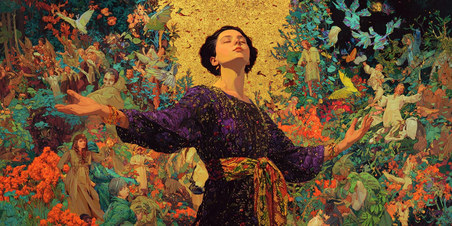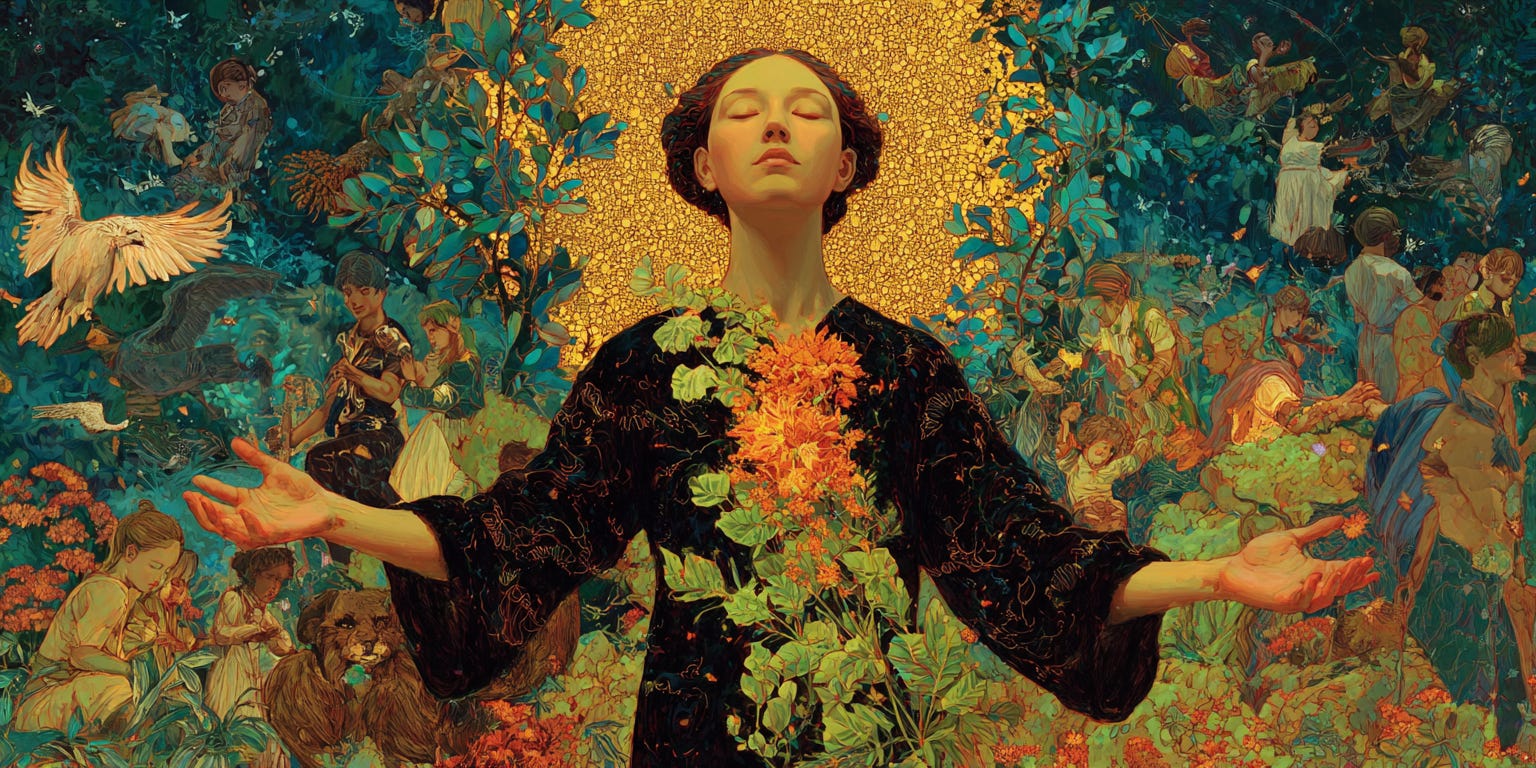 There is also advanced work to be done, for those who choose it: diplomacy! Help the gods find greater alliance. If you worship one political tribe, befriend those from a different one. If you are an artist, befriend a tech bro. Think about those subcultures, archetypes, and aesthetics that make your nose curl in disgust. Show them the glory of your gods and become curious about the glory of theirs. Invite them to dinner.